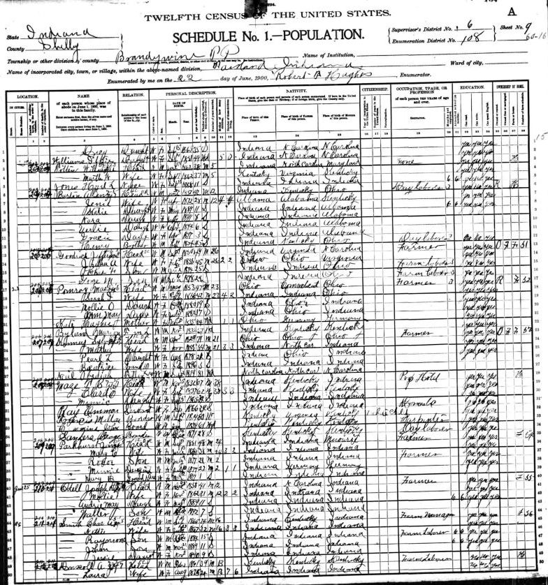 Shelby County Indiana Family History Census Records Brandywine Township 1900 1900 Census Index All Years Census Index Main Page